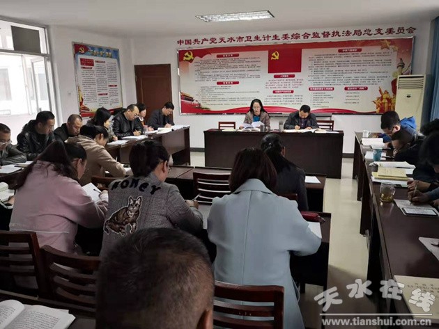 10月21日上午,天水市衛(wèi)生計(jì)生委綜合監(jiān)督執(zhí)法局開展“不忘初心、牢記使命”主題教育黨總支書記講專題黨課活動。局黨總支委員、全體黨員干部參加黨課活動。