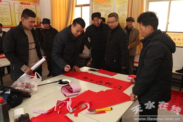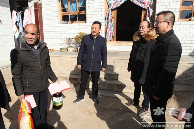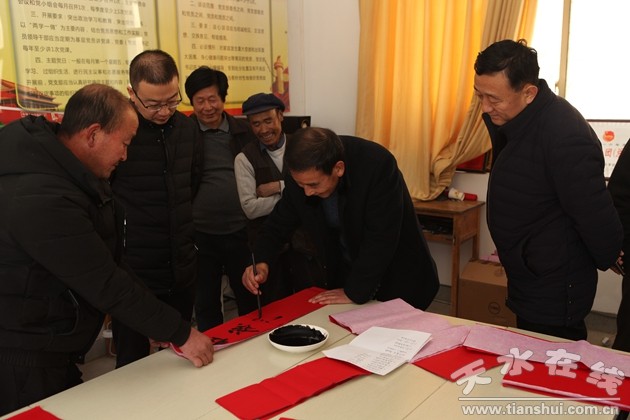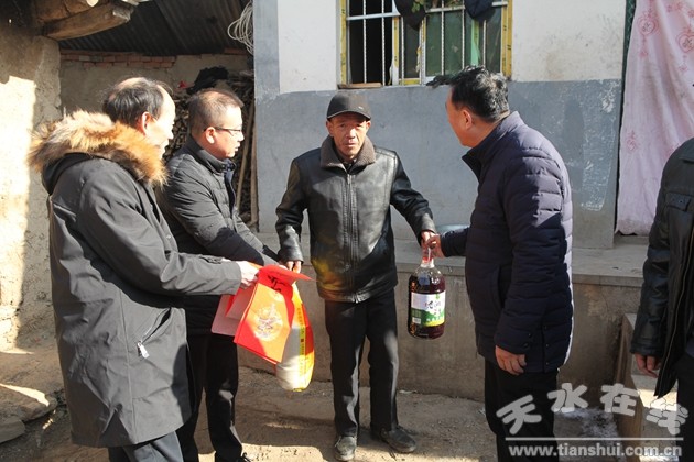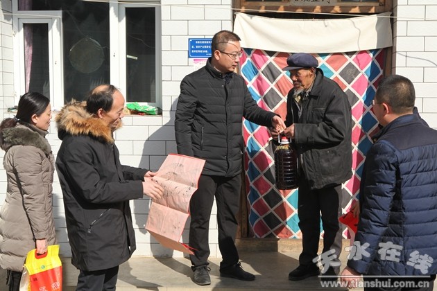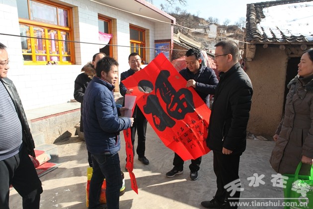 1月20日,正值2020年春節(jié)來臨之際,天水市第三人民醫(yī)院黨委副書記、院長李剛,黨委委員、副院長陳元前,黨委委員、紀委書記陳軍明及部分幫扶干部,前往武山縣沿安鄉(xiāng)高九村開展“迎新春送溫暖”慰問活動,給老黨員、貧困戶、五保戶送去了大米、食用油,給村民群眾現(xiàn)場書寫春聯(lián),為他們送上了暖暖的新春祝福和誠摯的問候。