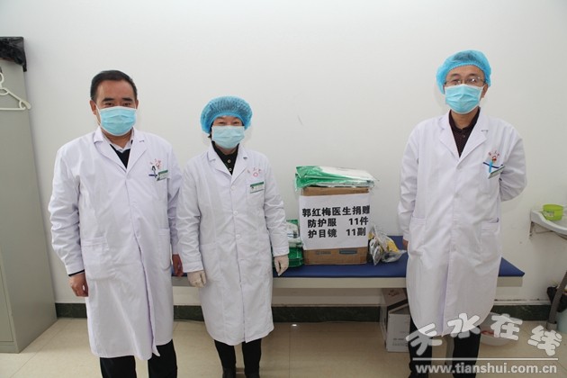 另外,天水市第三人民醫(yī)院還收到8位愛心人士捐贈(zèng)的醫(yī)療物資:郭紅梅捐贈(zèng)防護(hù)服11套、護(hù)目鏡6個(gè);柴可尉捐贈(zèng)丁腈手套200雙、護(hù)目鏡10個(gè);張鳴飛捐贈(zèng)其它口罩300個(gè);焦士班捐贈(zèng)一次性醫(yī)用口罩60個(gè)、其它口罩4個(gè);王愛清捐贈(zèng)其它口罩100個(gè);吳迪捐贈(zèng)其它口罩100個(gè);康龍捐贈(zèng)其它口罩50個(gè);馬慶斌捐贈(zèng)其它口罩10個(gè)。
