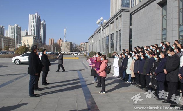 2月15日,待命多日的天水市婦幼保健院2名護(hù)士于今日隨甘肅省第三批支援湖北抗擊疫情醫(yī)療隊(duì)出征。市婦幼保健院黨政領(lǐng)導(dǎo)及相關(guān)人員為2名護(hù)士舉行了簡短的送行會,要求她們嚴(yán)格按規(guī)范操作,做好自身防護(hù),保證完成任務(wù),早日凱旋歸來。