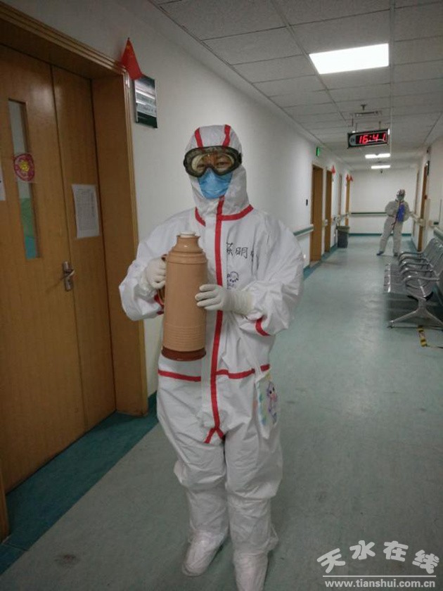 因穿著防護(hù)服,我們干活很不方便,所有的事都要小心翼翼地做,走路不能太快,轉(zhuǎn)頭時(shí)要整個(gè)身子跟著轉(zhuǎn),慢慢的我們就會(huì)感到胸悶氣短,呼吸困難的不適感會(huì)逐漸加重,但大家都在堅(jiān)持著,小組成員互相支持,互相慰問(wèn),慢慢的又忘記了不舒服,投入到工作中去,我們來(lái)自不同地區(qū),卻是戰(zhàn)友,是一家人,雖然身體疲憊,但大家心里卻很充實(shí)。