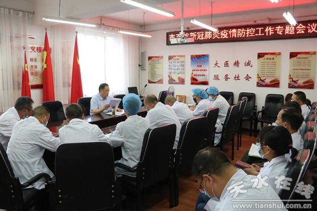 6月16日,天水市第五人民醫(yī)院召開了新冠肺炎疫情防控工作專題會議。疫情應(yīng)急處理領(lǐng)導(dǎo)小組成員,科級干部、各科室負責(zé)人40余人參加會議。會議由黨總支書記、院長潘臨平主持。