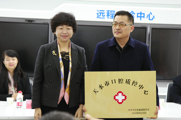 高國明對參加會議的各位領(lǐng)導和專家教授表示熱烈的歡迎和衷心的感謝。李姝代表天水市衛(wèi)健委向口腔質(zhì)控中心的成立表示祝賀,她指出,天水市口腔醫(yī)學質(zhì)量控制中心成立,是我市口腔醫(yī)學發(fā)展史上的一件大事,必將有利于促進口腔醫(yī)學專業(yè)化、規(guī)范化、同質(zhì)化建設(shè),對提升全市口腔醫(yī)療技術(shù)水平具有十分重要的推動作用,同時也希望市二院口腔科以這次口腔醫(yī)學質(zhì)控中心成立為契機,更進一步規(guī)范診療行為,促進醫(yī)療水平和綜合服務(wù)能力的提升,為天水人民提供更優(yōu)質(zhì)的醫(yī)療服務(wù)。市衛(wèi)健委副主任李姝為“天水市口腔質(zhì)控中心”授牌。高小平主任作了表態(tài)發(fā)言,口腔質(zhì)控中心落戶我院,是對我們工作的充分肯定,我們將以此為新的起點,在市衛(wèi)健委和各位專家的精心指導下、在院領(lǐng)導的大力支持下,不斷鉆研新業(yè)務(wù)、新技術(shù),嚴格按照口腔專業(yè)規(guī)范,指導市內(nèi)同行,進一步促進和提高我市口腔專業(yè)的發(fā)展。
