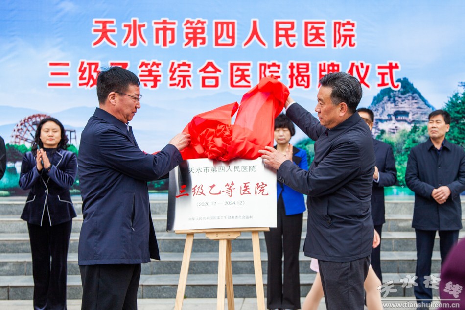 隨后,市衛(wèi)生健康委黨組書記、主任陳克孝、麥積區(qū)區(qū)委常委、宣傳部部長王啟峰共同為四院三級乙等綜合醫(yī)院揭牌。