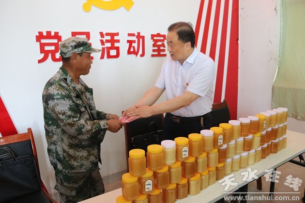 學(xué)史力行是明理、增信、崇德的歸宿與落腳點(diǎn),是開展黨史學(xué)習(xí)教育的關(guān)鍵環(huán)節(jié)。市五院黨總支把學(xué)史力行作為破解知行“兩張皮”的抓手。要求全院黨員干部在崗位履職盡責(zé)上大顯身手,在為群眾辦實(shí)事上盡心竭力。結(jié)合幫扶工作,按照群眾迫切希望修建田間道路的愿望,克服醫(yī)院資金緊張的現(xiàn)狀,為修田間道路籌措幫扶資金1萬元;同時帶領(lǐng)業(yè)務(wù)技術(shù)骨干開展了義診活動,將移動B超機(jī)帶到村上,為行動不便老人進(jìn)行了B超檢查,現(xiàn)場發(fā)放常用藥品1000余元。為助推產(chǎn)業(yè)發(fā)展,市五院26名黨員干部積極認(rèn)購幫扶戶土蜂蜜60斤,4800元。
