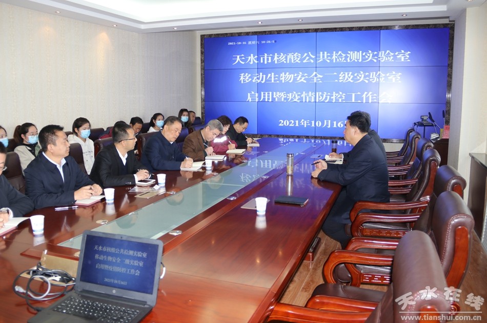 揭牌儀式結(jié)束后召開了天水市公共核酸檢測實驗室啟用暨疫情防控工作會議。會上,市政府黨組成員逯克宗對移動生物安全二級實驗室在天水市第五人民醫(yī)院開展檢測工作的具體措施進(jìn)行了詳細(xì)安排,同時對全市落實常態(tài)化疫情防控措施、新冠疫苗接種、新冠核酸檢測、公共衛(wèi)生服務(wù)能力提升等方面做了安排部署。