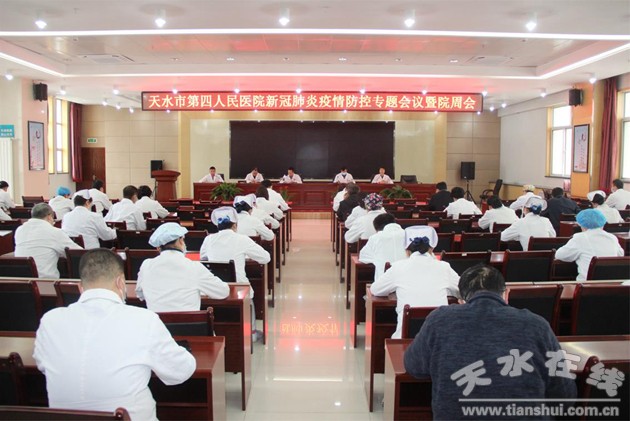 為進一步落實醫(yī)院疫情防控主體責(zé)任,打好疫情防控遭遇戰(zhàn),10月19日,天水市四院緊急召開疫情防控專題會議,傳達省衛(wèi)健委疫情防控緊急視頻會議和全市疫情防控緊急會議精神,對常態(tài)化疫情防控各項工作再安排、再部署。院領(lǐng)導(dǎo)班子成員、各臨床、醫(yī)技、職能科室負責(zé)人參加。