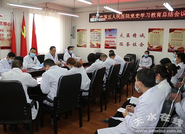 3月18日上午,天水市第五人民醫(yī)院召開了黨史學(xué)習(xí)教育總結(jié)會(huì)議。會(huì)議由黨總支書記、院長潘臨平主持,黨總支委員、各支部支委委員、科級(jí)干部及負(fù)責(zé)人、部分黨員參加了會(huì)議。