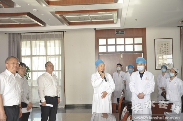 院黨委書記王志剛代表院黨委向趙繼榮一行簡要介紹了近年來市中醫(yī)院重點工作尤其是科教研工作和人才隊伍培養(yǎng)建設情況。市中醫(yī)院現(xiàn)有博士研究生導師1名,碩士研究生導師7名。醫(yī)院自2015年創(chuàng)建成為甘肅中醫(yī)藥大學非直屬附屬醫(yī)院以來,承擔著中醫(yī)學和中西醫(yī)結合本科實習及研究生培養(yǎng)工作,累計接收中醫(yī)、針灸推拿、中西醫(yī)結合等專業(yè)本科實習生326名,其中74名學生被錄取為碩士研究生。培養(yǎng)博士研究生1名,碩士研究生30名。醫(yī)院始終堅持以“帶教育人”為目標,不斷改善教學條件,強化帶教管理,夯實教學基礎,確保臨床教學任務順利完成,培養(yǎng)了大批優(yōu)秀臨床專業(yè)技術人才,贏得了社會的廣泛贊譽。