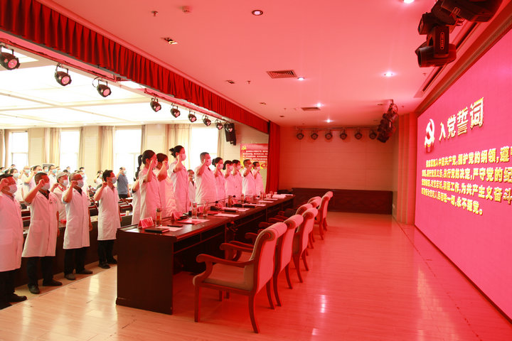 首先舉行“光榮在黨50年”紀念章頒發(fā)儀式,由黨委書記麻赪同志、副院長趙子洲同志為兩名老黨員頒發(fā)了“光榮在黨50年”紀念章。紀委書記雷永寧同志宣讀了2022年預(yù)備黨員轉(zhuǎn)為正式黨員的批復(fù);副院長白云峰同志宣讀了2022年接收預(yù)備黨員的批復(fù);副院長閆振錄同志帶領(lǐng)新黨員宣誓,與會人員全體起立重溫入黨誓詞。