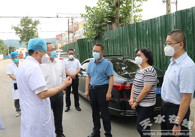 7月21日下午,省委督查專員王鳳虎帶領(lǐng)省新冠肺炎疫情防控第三工作組一行三人督導(dǎo)天水市第五人民醫(yī)院新冠肺炎醫(yī)療救治工作。市市委常委、宣傳部長王文東,市人大副主任何曉斌,市政府副秘書長馮榮,市衛(wèi)健委主任王定新,麥積區(qū)委常委、宣傳部長溫建軍,麥積區(qū)委常委、政法委書記李東海陪同檢查。