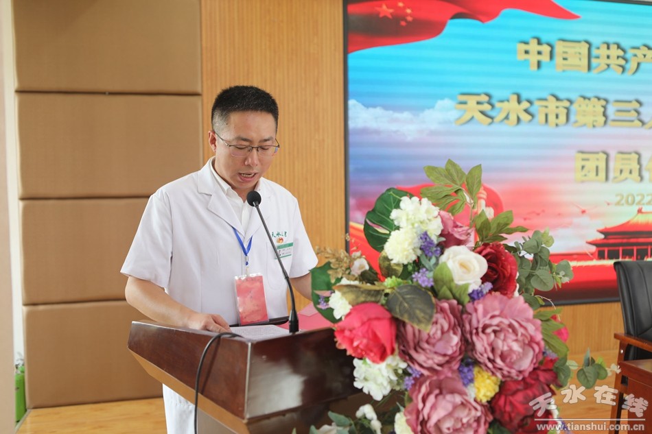 大會首先聽取了上一屆團委委員聶健同志作的《共青團天水市第三人民醫(yī)院第一屆委員會工作報告》,報告從團建工作、思想建設、志愿服務等方面回顧了五年來院團委的工作情況,全面總結(jié)現(xiàn)屆團委在院黨委的正確領導下,始終堅持“高舉團旗跟黨走”,帶領全院團員青年做了大量卓有成效的工作。