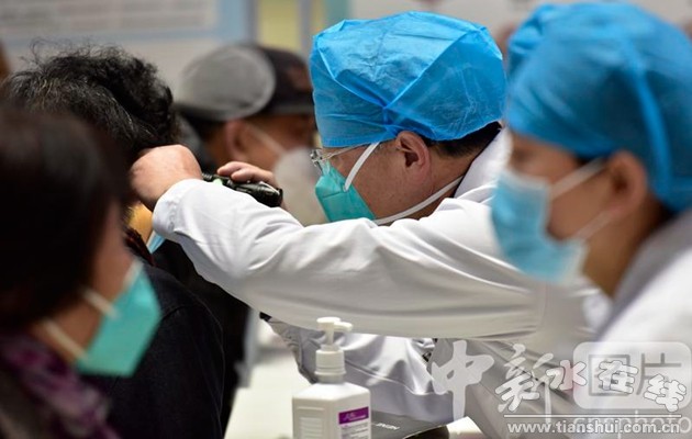 (3月1日,甘肅省天水市第一人民醫(yī)院耳鼻喉科主任醫(yī)師劉衛(wèi)平紅患者檢查。)