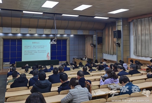 為了幫助天水市職業(yè)技術(shù)學(xué)校教師提升情緒與壓力管理能力,引導(dǎo)大家科學(xué)地進(jìn)行心理調(diào)節(jié),3月21日下午,天水市疾控中心在天水市職業(yè)技術(shù)學(xué)校舉辦了一場(chǎng)主題為“正確面對(duì)壓力,科學(xué)管理情緒”的心理健康知識(shí)講座,市職業(yè)技術(shù)學(xué)校在校教職工100余人參加講座。