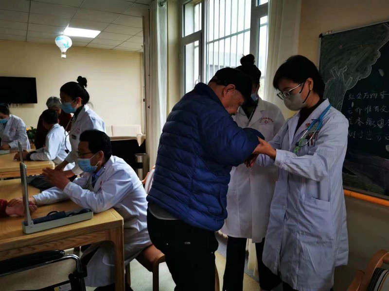 “爺爺,您血壓有點高哦,平時一定要按時吃藥,注意低鹽、低脂飲食,少喝濃茶!薄澳棠蹋炔缓,要注意休息”……活動現(xiàn)場,醫(yī)護人員認真為康陽居的老人測血壓、血糖,了解他們的飲食起居、身體狀況和用藥情況,熱情耐心地解答了老人提出的問題,對老年疾病的預防、治療、用藥及飲食生活、健康康復等方面進行了科普宣教,叮囑他們保重身體。