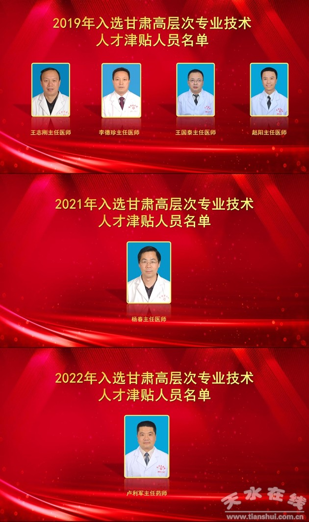天水市中醫(yī)院將以習近平新時代中國特色社會主義思想為指導,深入貫徹黨的二十大精神,全面貫徹習近平總書記關于做好新時代人才工作的重要思想,最大限度激發(fā)高層次專業(yè)技術人才扎根隴原、服務甘肅的創(chuàng)新創(chuàng)造活力。以“三抓三促”行動為契機,通過多種渠道、多種方式,大力宣傳學習醫(yī)院6位享受津貼人員的奮斗精神和重大貢獻,深入實施新時代人才強院戰(zhàn)略,充分發(fā)揮高層次專業(yè)技術人才技術領軍作用,為醫(yī)院高質量發(fā)展新局面持續(xù)奮斗,為全面建設社會主義現(xiàn)代化幸福美好新甘肅作出新的更大貢獻。