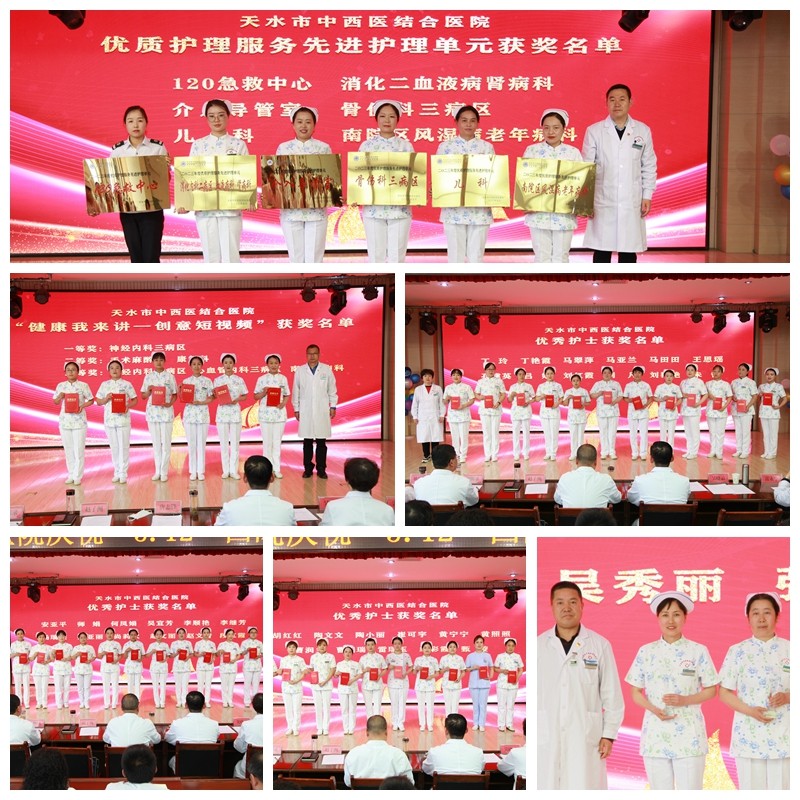 會(huì)上,黨委書記曹寶國(guó)代表院班子成員向辛勤工作在護(hù)理戰(zhàn)線上的白衣天使們致以節(jié)日的問候和美好的祝愿,向受到表彰的護(hù)理集體和個(gè)人表示熱烈的祝賀。向在護(hù)理崗位上奉獻(xiàn)多年的老護(hù)士表示衷心的感謝!并高度贊揚(yáng)了護(hù)理隊(duì)伍在疫情防控中做出的重要貢獻(xiàn),同時(shí)提出希望。護(hù)理部主任陳少娟向大會(huì)作了2022年度護(hù)理工作報(bào)告。常務(wù)副院長(zhǎng)吳曉云宣讀了《天水市中西醫(yī)結(jié)合醫(yī)院關(guān)于慶祝2023年“5·12”國(guó)際護(hù)士節(jié)表彰先進(jìn)護(hù)理單元和先進(jìn)個(gè)人的決定》。副院長(zhǎng)趙子洲主持了頒獎(jiǎng)儀式。對(duì)評(píng)選出的優(yōu)秀護(hù)理單元、優(yōu)秀護(hù)士、健康我來講-創(chuàng)意短視頻比賽獲獎(jiǎng)護(hù)理單元進(jìn)行了表彰,為2位從事護(hù)理工作多年的前輩頒發(fā)“30年護(hù)理奉獻(xiàn)”紀(jì)念獎(jiǎng)杯。五位護(hù)理部前輩為新入職護(hù)士進(jìn)行了授帽儀式。各黨支部精彩紛呈的文藝節(jié)目為與會(huì)人員帶來了一場(chǎng)視覺盛宴,展示了護(hù)理人工作之外的另一面風(fēng)采,贊美了護(hù)理人無私奉獻(xiàn)的職業(yè)精神,為本屆護(hù)士節(jié)系列活動(dòng)畫上了圓滿的句號(hào)。
