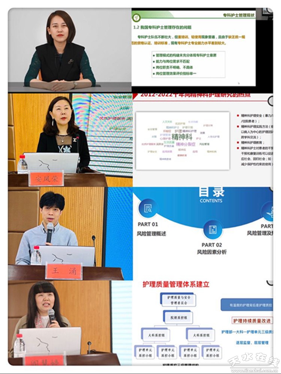 4月21日-22日,由天水市第三人民醫(yī)院、甘肅省護(hù)理學(xué)會精神科護(hù)理專業(yè)委員會主辦的甘肅省繼續(xù)醫(yī)學(xué)教育“精神科護(hù)理質(zhì)量管理新進(jìn)展”學(xué)習(xí)班暨精神科護(hù)理專業(yè)委員會學(xué)術(shù)年會在我院成功舉辦。天水市衛(wèi)生健康委員會黨組成員、副主任楊智才,市三院院黨委書記麻赪,甘肅省護(hù)理學(xué)會副秘書長、護(hù)理管理專業(yè)委員會主任委員閻慧婷,甘肅省護(hù)理學(xué)會精神科護(hù)理專業(yè)委員會副主任委員尹敏,天水市護(hù)理學(xué)會理事長、護(hù)理質(zhì)控中心主任靳綺出席了開班儀式,會議由市三院院長李剛主持。國家衛(wèi)健委醫(yī)院管理研究所醫(yī)院評審專家、中華護(hù)理學(xué)會精神衛(wèi)生專業(yè)委員會主任委員馬莉為開班致辭,甘肅省護(hù)理學(xué)會理事長、護(hù)理質(zhì)控中心主任韓琳在學(xué)習(xí)班上作了重要講話。來自我省及周邊省份的21家醫(yī)院200余名護(hù)理管理者及護(hù)理骨干參加培訓(xùn)。在學(xué)術(shù)交流過程中,8名授課專家以護(hù)理管理及精神科護(hù)理照護(hù)水平的持續(xù)提升為基礎(chǔ),從不同的視角為學(xué)員們帶來了一場精彩紛呈的學(xué)術(shù)盛宴,讓與會者對其內(nèi)涵和應(yīng)用進(jìn)行了再認(rèn)識與再思考,更為進(jìn)一步推動精神科護(hù)理事業(yè)高質(zhì)量發(fā)展提供了深刻啟迪。作為甘肅省護(hù)理學(xué)會精神科護(hù)理專業(yè)委員會連任主委單位,市三院護(hù)理團(tuán)隊將以“新思路、新舉措、新發(fā)展”為指導(dǎo)思想,充分發(fā)揮本專業(yè)委員會的學(xué)術(shù)帶動作用,為我省的精神衛(wèi)生及護(hù)理事業(yè)起到積極的推動作用。