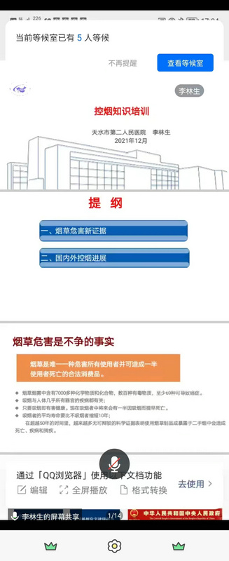 5月31日是第36個世界無煙日,今年我國的宣傳主題為“無煙 為成長護航”。為倡導健康文明的生活方式,提高醫(yī)院干部、職工對吸煙危害的認識,強化控煙意識和禁煙行為,當日,天水市第二人民醫(yī)院公共衛(wèi)生科邀請呼吸與危重癥醫(yī)學科主任李林生以線上會議的形式分時段為全院職工開展了戒煙健康知識講座。