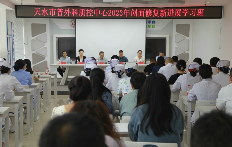 為進(jìn)一步推進(jìn)醫(yī)院創(chuàng)面修復(fù)亞專業(yè)的建設(shè),結(jié)合“抓學(xué)習(xí)促提升”要求,6月11日,天水市第二人民醫(yī)院在內(nèi)科大樓14樓會議室舉辦了2023年創(chuàng)面修復(fù)外科新進(jìn)展學(xué)習(xí)班。特邀國內(nèi)知名專家、國之名醫(yī)——優(yōu)秀風(fēng)范榮譽獲得者、蘭大二院燒傷整形與創(chuàng)面修復(fù)外科主任劉毅教授及其團隊和市二院副院長高國明出席會議。會議由市二院普外科一病區(qū)主任王彬主持。市二院及周邊兄弟單位相關(guān)專業(yè)醫(yī)師約60余人現(xiàn)場聆聽。