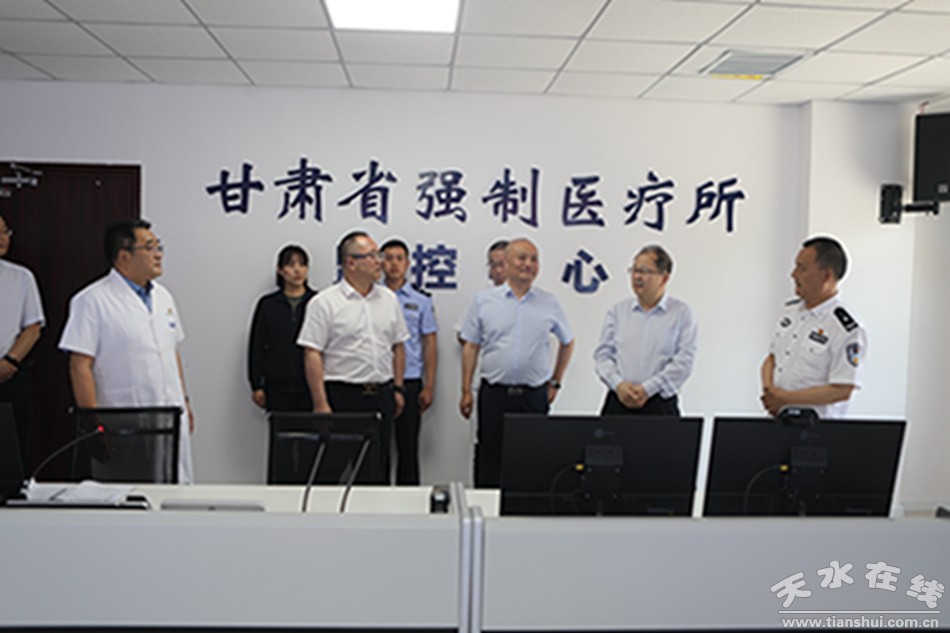 6月21日,甘肅省衛(wèi)生健康委員會(huì)黨組書記楊隴軍、甘肅省衛(wèi)生健康委員會(huì)副主任白育萍一行4人蒞臨我院調(diào)研指導(dǎo)強(qiáng)制醫(yī)療工作。天水市衛(wèi)生健康委員會(huì)黨組書記、主任王定新,天水市衛(wèi)生健康委員會(huì)黨組成員、副主任徐峰,甘肅省強(qiáng)制醫(yī)療所所長(zhǎng)杜孜學(xué),我院黨委書記麻赪,黨委副書記、院長(zhǎng)李剛及黨政領(lǐng)導(dǎo)班子成員陪同調(diào)研。