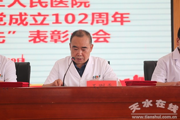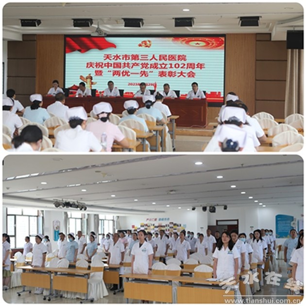 6月29日下午,天水市第三人民醫(yī)院在門診十二樓多功能會議室隆重召開慶祝中國共產(chǎn)黨成立102周年暨“兩優(yōu)一先”表彰大會。院領(lǐng)導(dǎo)班子成員、“兩優(yōu)一先”受表彰人員、黨務(wù)干部以及黨員代表共120余人參加會議。會議由院黨委副書記、院長李剛同志主持。