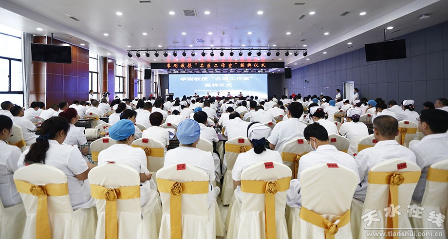 儀式上,季剛教授與張曉強部長共同為天水市第一人民醫(yī)院、天水市中西醫(yī)結(jié)合醫(yī)院季剛教授“名醫(yī)工作室”揭牌。