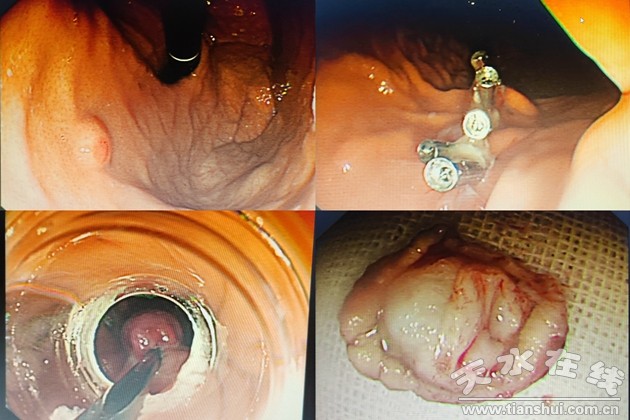 術前我們向患者及家屬告知鏡下診斷結果,進一步診療方案,可能存在的風險與不良愈后,患者及家屬充分知情并同意后,完善各種術前準備,在我院胃腸鏡室由手術麻醉科配合全麻下順利完成該手術;颊呤中g過程約10分鐘,術后10分鐘待患者完全蘇醒后送至病房給予對癥支持治療。術后當天患者意識清醒,當天可以下床活動,無惡心、嘔吐、腹痛等不適,術后第一天患者各項生命體征平穩(wěn),精神佳,術后第二天即開始流質飲食。術后病理診斷“平滑肌瘤”并于當天順利出院。