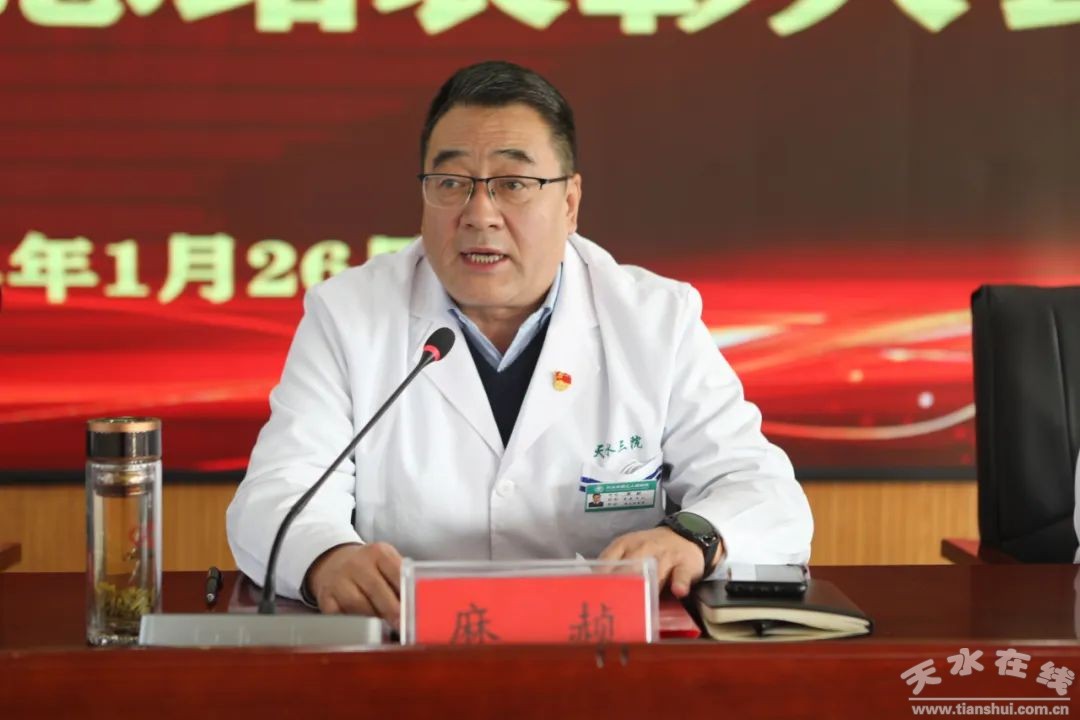1月26日下午,天水市第三人民醫(yī)院在門診十二樓多功能會議室召開2023年度工作總結(jié)暨表彰大會。市衛(wèi)健委黨組成員、副主任徐峰受邀蒞臨大會,院領(lǐng)導(dǎo)班子成員、全體中層干部、職工代表及受表彰人員120余人參加大會。大會由院黨委副書記、院長李剛主持。