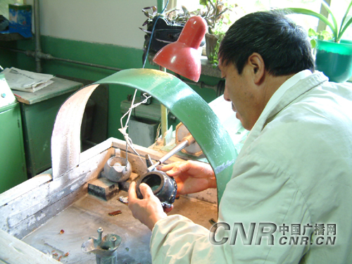 工匠在仔細打磨夜光杯