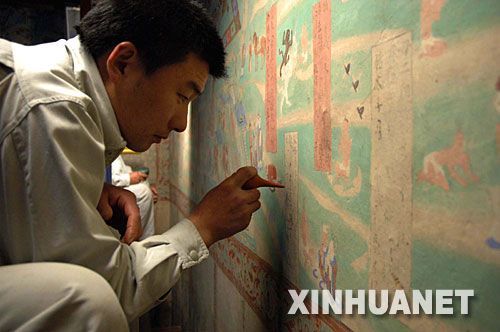 新華網(wǎng)11月19日電 集壁畫、彩塑、建筑于一身的敦煌莫高窟,是世界現(xiàn)存規(guī)模最大、連續(xù)營(yíng)造時(shí)間最長(zhǎng)、內(nèi)容最豐富的石窟長(zhǎng)廊和佛教藝術(shù)殿堂。為了保護(hù)敦煌藝術(shù)瑰寶,敦煌研究院幾十年來一直將壁畫保護(hù)作為核心工作,經(jīng)過不斷試驗(yàn)和實(shí)踐,成功探索出了一套對(duì)起甲、變色、脫落等壁畫病害進(jìn)行治理修復(fù)的工藝規(guī)范,并培養(yǎng)出一批技術(shù)精湛、經(jīng)驗(yàn)豐富的壁畫修復(fù)人員。截至目前,已完成壁畫修復(fù)3000多平方米。 新華社記者 王艷明 攝