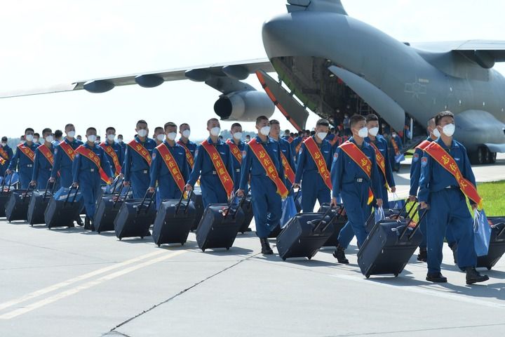 7月31日和8月1日,按照“區(qū)域集中、就近就便”原則,空軍在石家莊、濟(jì)南、南京、長沙、成都5個城市設(shè)登機(jī)點,派出數(shù)架運-20飛機(jī)集中運送新錄取飛行學(xué)員到空軍航空大學(xué)報到。這是空軍首次使用國之重器“鯤鵬”執(zhí)行運送飛行學(xué)員入校任務(wù)。