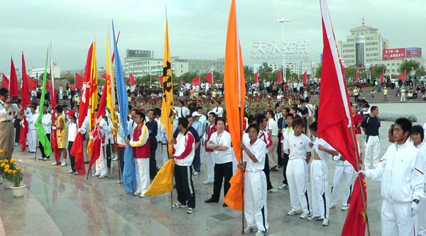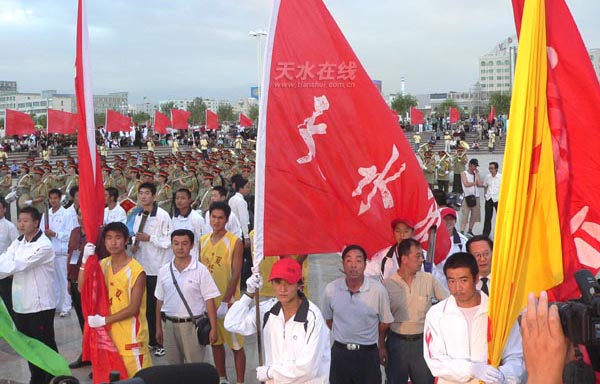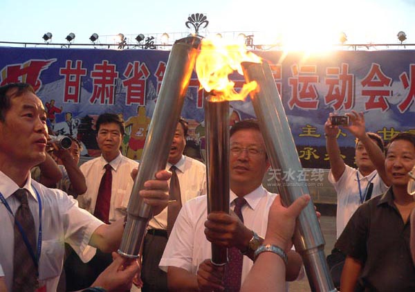 晚8時(shí)許,圣火匯集儀式在嘉峪關(guān)雄關(guān)廣場舉行。來自甘肅14個(gè)市、州的運(yùn)動員代表在微風(fēng)中手持火炬,匯集在一起,點(diǎn)燃了兩把火炬。隨后,省十一運(yùn)組委會主任、甘肅副省長李膺手中的火炬被點(diǎn)燃。6月12日在嘉峪關(guān)城樓文昌閣廣場點(diǎn)燃的火種,歷時(shí)兩個(gè)多月,傳遍了全省14個(gè)市、州,80個(gè)縣、區(qū),259個(gè)鄉(xiāng)、鎮(zhèn),將此次省運(yùn)會“和諧、健身、拼搏、奮進(jìn)”的宗旨,傳遍了隴原大地,營造了濃厚的體育文化氛圍,促進(jìn)了群眾體育的發(fā)展。匯集到的圣火,19日晚上將在開幕式上點(diǎn)燃嘉峪關(guān)體育場的主火炬。