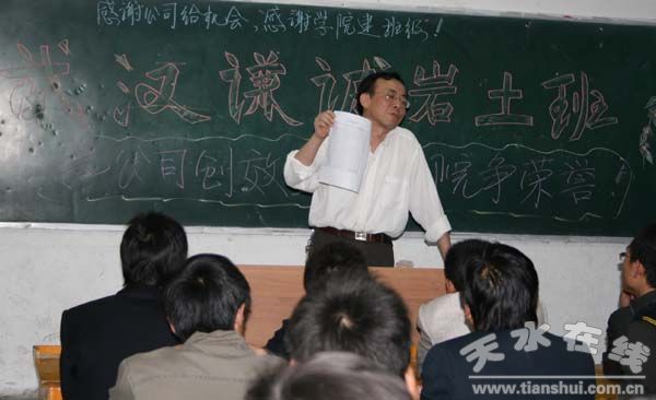 郭超英向赴武漢謙誠巖土公司工作的學(xué)生講話