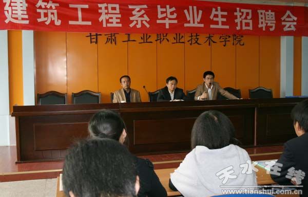 為全面貫徹落實學(xué)院2009年3月24日就業(yè)工作會議提出的各項目標(biāo)任務(wù),做好07級畢業(yè)生實習(xí)(就業(yè))工作,甘肅工業(yè)職業(yè)技術(shù)學(xué)院建筑工程系在4月10日至5月12日期間,通過函件邀請和網(wǎng)上招聘的多種方式,先后邀請核工業(yè)華興建設(shè)有限公司、上海旋噴巖土公司、武漢謙誠巖土公司、陜西藍(lán)環(huán)環(huán)境集團(tuán)有限公司、重慶誠德巖土有限公司、江蘇南通六建內(nèi)蒙分公司、江蘇中興建筑公司、江蘇富辰勞務(wù)公司、河北兵北工程質(zhì)量檢測有限公司、新疆兵團(tuán)第八建筑有限公司、建研地基上海分公司、北京世紀(jì)騰邁建筑工程有限公司、北京中鐵二院、上海海峰建筑有限公司、核工業(yè)青島248大隊、山東中有勘察設(shè)計咨詢有限公司、甘肅祥和建筑有限公司、山東濟(jì)南恒正瑞華工程檢測公司、江蘇省地質(zhì)工程勘察院北方分院、西藏龍坤建設(shè)工程有限公司、新疆圣峰建設(shè)有限公司、中煤地質(zhì)工程總公司第四工程處等22家單位進(jìn)行對建筑工程系畢業(yè)生多渠道招聘。