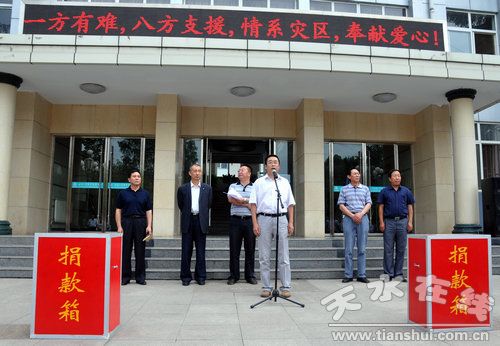 8月24日下午,甘肅工業(yè)職業(yè)技術(shù)學(xué)院舉行了“舟曲·隴南·天水”災(zāi)區(qū)捐款活動。捐款儀式由學(xué)院黨委副書記、院長曹愛明主持,院黨委書記王志年出席捐款儀式并作了重要講話。