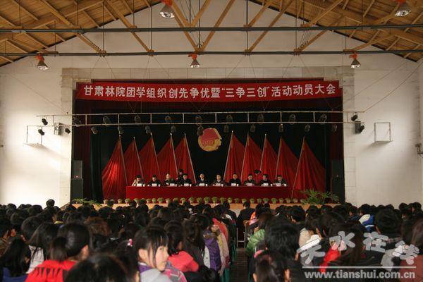 3月2日,甘肅林業(yè)職業(yè)技術(shù)學(xué)院召開(kāi)團(tuán)學(xué)組織創(chuàng)先爭(zhēng)優(yōu)暨“三爭(zhēng)三創(chuàng)”活動(dòng)動(dòng)員大會(huì)。該院副院長(zhǎng)冉福祥,學(xué)生處、團(tuán)委負(fù)責(zé)人及各系黨總支書記參加。大會(huì)由團(tuán)委書記羅龍主持。