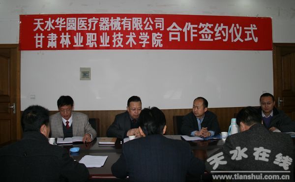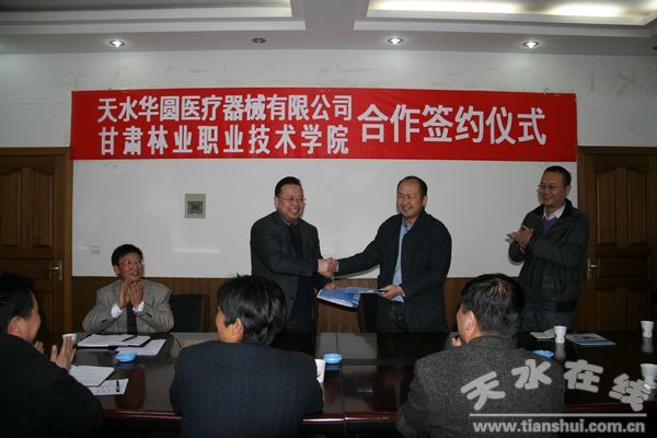 3月4日,甘肅林業(yè)職業(yè)技術(shù)學院與天水華圓醫(yī)療器械有限公司舉行校企合作簽約儀式。該院院長蘆維忠、副院長冉福祥、華圓集團董事長李晟、總經(jīng)理段永鋼、天水華圓技校校長楊珂、副校長王小峰出席簽約儀式,參加簽約儀式的還有學院招生就業(yè)處處、教務處、機電工程系負責人及部分教師。冉福祥主持簽約儀式。
