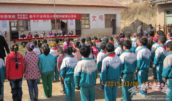 3月8日,帶著對聯(lián)村聯(lián)戶點孩子們的款款深情和絲絲牽掛,市委黨校婦委會組織全體女職工赴雙聯(lián)點之一的秦安縣千戶鄉(xiāng)何呂村開展以“手拉手,齊心育未來,心連心,共奔小康路”為主題的送溫暖慰問走訪活動,給孩子們送去文具盒、書包、教輔書等學習用品和一些衣物、生活用品,同時還送去了50套桌椅,把愛心和溫暖送到每一位孩子的心中。