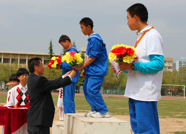 本屆運(yùn)動(dòng)會(huì)可謂成果輝煌。運(yùn)動(dòng)會(huì)上有6位同學(xué)破校最高記錄;學(xué)校組委會(huì)對(duì)各個(gè)項(xiàng)目中成績優(yōu)秀的同學(xué)進(jìn)行獎(jiǎng)勵(lì),對(duì)前三名頒發(fā)了獎(jiǎng)牌,金銀銅牌共計(jì)240枚,并對(duì)比賽中獲“組織獎(jiǎng)”、“團(tuán)體總分獎(jiǎng)”、“體育道德風(fēng)尚獎(jiǎng)”和“廣播操比賽獎(jiǎng)”的各年級(jí)優(yōu)勝班級(jí)進(jìn)行了表彰。