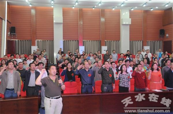 大會(huì)舉行了簡(jiǎn)短而莊嚴(yán)的教師宣誓儀式。全體教師起立,奏唱國(guó)歌,并面對(duì)國(guó)旗,莊嚴(yán)宣誓!拔以缸鲆幻鈽s的人民教師,面對(duì)國(guó)旗,莊嚴(yán)宣誓:遵守國(guó)家法律,貫徹黨的教育方針,忠誠(chéng)人民教育事業(yè),履行教師神圣職責(zé)。立德樹(shù)人,為人師表,爭(zhēng)當(dāng)教書(shū)育人楷模;關(guān)愛(ài)學(xué)生,嚴(yán)謹(jǐn)治學(xué),促進(jìn)學(xué)生全面發(fā)展;追求真理,崇尚科學(xué),不斷提升專(zhuān)業(yè)能力;恪盡職守,勇于創(chuàng)新,樂(lè)做終身學(xué)習(xí)典范;珍惜生命,熱愛(ài)生活,團(tuán)結(jié)協(xié)作,甘于奉獻(xiàn),為教育事業(yè)貢獻(xiàn)畢生精力!”鏗鏘有力的誓言,充分表達(dá)了我校師生立德樹(shù)人、為人師表、爭(zhēng)當(dāng)教書(shū)育人楷模的品質(zhì)和團(tuán)結(jié)協(xié)作、勇于創(chuàng)新、為教育事業(yè)貢獻(xiàn)畢生精力的奉獻(xiàn)精神。