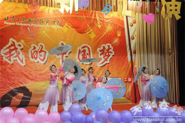 9月13日,甘肅工業(yè)職業(yè)技術(shù)學(xué)院“我的中國夢”迎新文藝匯演在大學(xué)生活動(dòng)中心隆重開幕, 2013級軍訓(xùn)新生和全體教官觀看了匯演。本次活動(dòng)由學(xué)校宣傳部、學(xué)工部、校工會和校團(tuán)委主辦,各團(tuán)總支、校學(xué)生會承辦。晚會由17個(gè)節(jié)目組成,有舞蹈、獨(dú)唱、朗誦、手語、樂器演奏、戲曲表演、武術(shù)等,形式豐富多樣,表演精彩紛呈。會場上場面熱鬧,氣氛熱烈。