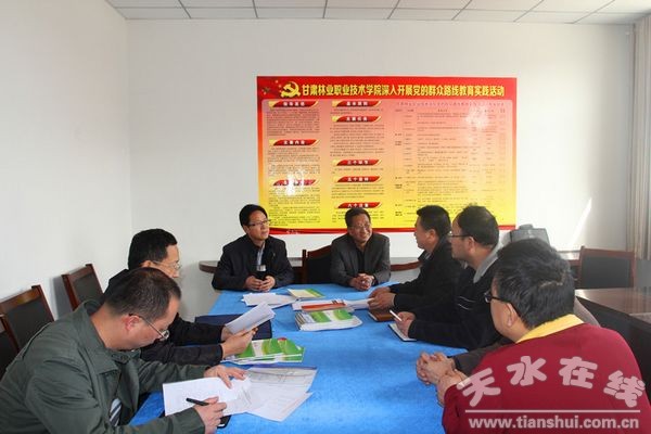 3月12日下午,省委黨的群眾路線教育實(shí)踐活動第十九督導(dǎo)組余四九副組長一行到甘肅林職學(xué)院檢查督導(dǎo)學(xué)院開展黨的群眾路線教育實(shí)踐活動,并參加學(xué)院黨委中心組黨的群眾路線教育實(shí)踐活動第四次集中學(xué)習(xí)討論會。學(xué)習(xí)討論會由學(xué)院黨委書記朱勇虎主持。