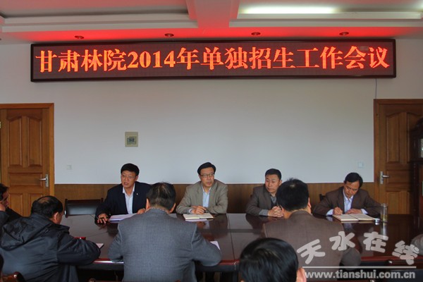 4月15日下午,甘肅林業(yè)職業(yè)技術(shù)學(xué)院召開2014年單獨(dú)招生工作會(huì)議,院長(zhǎng)陳逸平,黨委副書記、紀(jì)委書記高云峰,副院長(zhǎng)虎保成、冉福祥,辦公室、招生就業(yè)處、教務(wù)處、學(xué)生處、后勤處、計(jì)財(cái)處、監(jiān)察處、宣傳部、體育部、保衛(wèi)處、現(xiàn)代技術(shù)教育中心、團(tuán)委等部門的負(fù)責(zé)人參加,院長(zhǎng)陳逸平主持會(huì)議。
