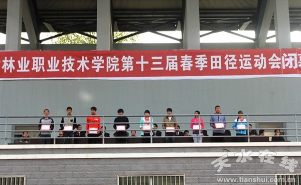 閉幕式上,運動會總裁判長宋永紅宣布了比賽成績及獲獎情況。林業(yè)工程系代表隊獲得團體總分第一名,建筑工程系代表隊獲得團體總分第二名,園林工程系代表隊獲得團體總分第三名。學院領(lǐng)導為獲獎集體及個人頒獎。