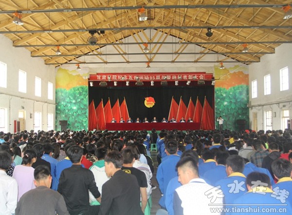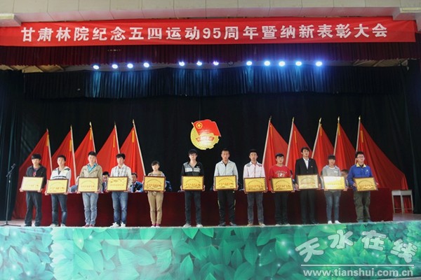 5月4日,甘肅林職學(xué)院召開(kāi)紀(jì)念“五四”運(yùn)動(dòng)95周年暨納新表彰大會(huì)。出席表彰大會(huì)的有學(xué)生處、團(tuán)委負(fù)責(zé)人、各系黨總支副書(shū)記、團(tuán)總支書(shū)記、輔導(dǎo)員及學(xué)生代表1000余人。表彰大會(huì)由團(tuán)委副書(shū)記王國(guó)龍主持。