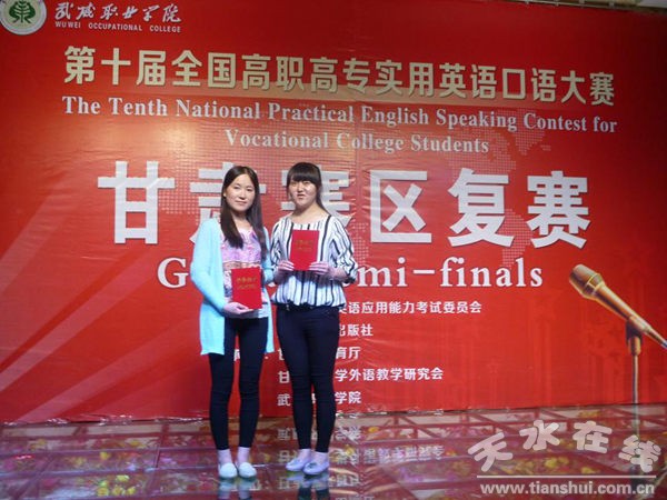 本次大賽有來自蘭州文理學(xué)院、蘭州石化職業(yè)技術(shù)學(xué)院、甘肅林業(yè)職業(yè)技術(shù)學(xué)院、蘭州資源環(huán)境職業(yè)技術(shù)學(xué)院、蘭州職業(yè)技術(shù)學(xué)院等15所院校共23名選手參賽,比賽內(nèi)容由現(xiàn)場描述、情景交流、PK辯論三部分組成,突出內(nèi)容的實用性、應(yīng)用性和職業(yè)性。比賽中要求口頭陳述,說明圖畫、圖表、廣告等信息內(nèi)容(如進出口額、市場變化、人口變動、生產(chǎn)狀況、生產(chǎn)指標、景點介紹等),并就各類廣告、產(chǎn)品說明、涉外業(yè)務(wù)等話題現(xiàn)場與兩位外教進行情景交流。由甘肅林職學(xué)院基礎(chǔ)部教師沈曉燕、余良分別指導(dǎo)的經(jīng)濟管理系商務(wù)英語專業(yè)學(xué)生彭海玲和林業(yè)工程系林業(yè)技術(shù)專業(yè)學(xué)生徐兆婷分獲專業(yè)組和非專業(yè)組三等獎。