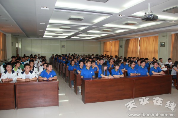 天水軍分區(qū)秦州區(qū)武裝部副部長馬奇同志,學院學生工作部負責人、團委書記王曉東老師,機械工程系副主任呂建平老師,現(xiàn)代制造工程系副主任廖天濱老師, 電氣工程系副主任楊龍老師, 經(jīng)濟與信息管理系副主任董建民老師參加示范教學活動,并和廣大同學共同聆聽了講座。學工部副部長閆坤倫老師主持儀式。