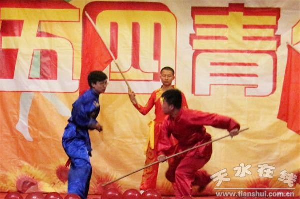 5月4日晚,甘肅工業(yè)職業(yè)技術(shù)學(xué)院校團(tuán)委主辦的紀(jì)念“五四”青年節(jié)文藝匯演在該校大學(xué)生活動(dòng)中心舉行,該校各二級(jí)學(xué)院黨總支書(shū)記、副書(shū)記、團(tuán)總支書(shū)記及800余名同學(xué)共同觀看演出。