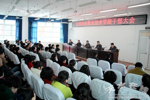 12月1日,甘肅林職學(xué)院召開干部大會。省委組織部副地級組織員周密、省委組織部干部三處正處級組織員王之臣出席,全體院領(lǐng)導(dǎo)、中層干部及副高職稱以上教師參加。會議由院長陳逸平主持。